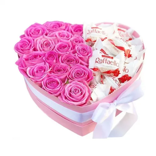 • Делюкс - кустовая роза 15 шт, лента, рафаэлло