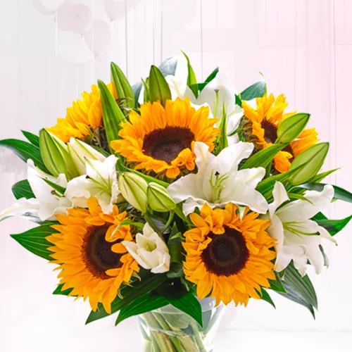 Букет из подсолнуха и роз Радостный день