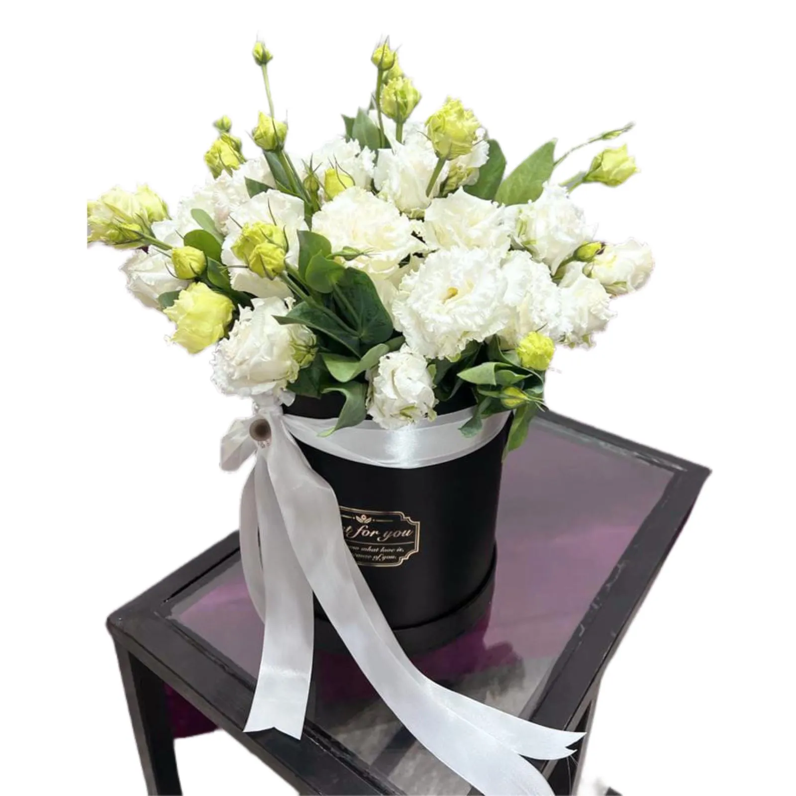 эустома, оазис, шляпная коробка