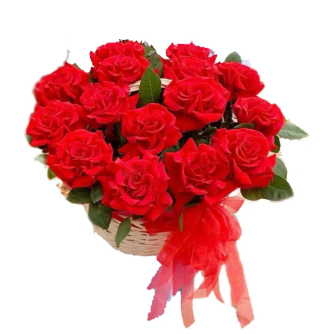 • Стандарт - 15 роз, зелень, корзина, оазис