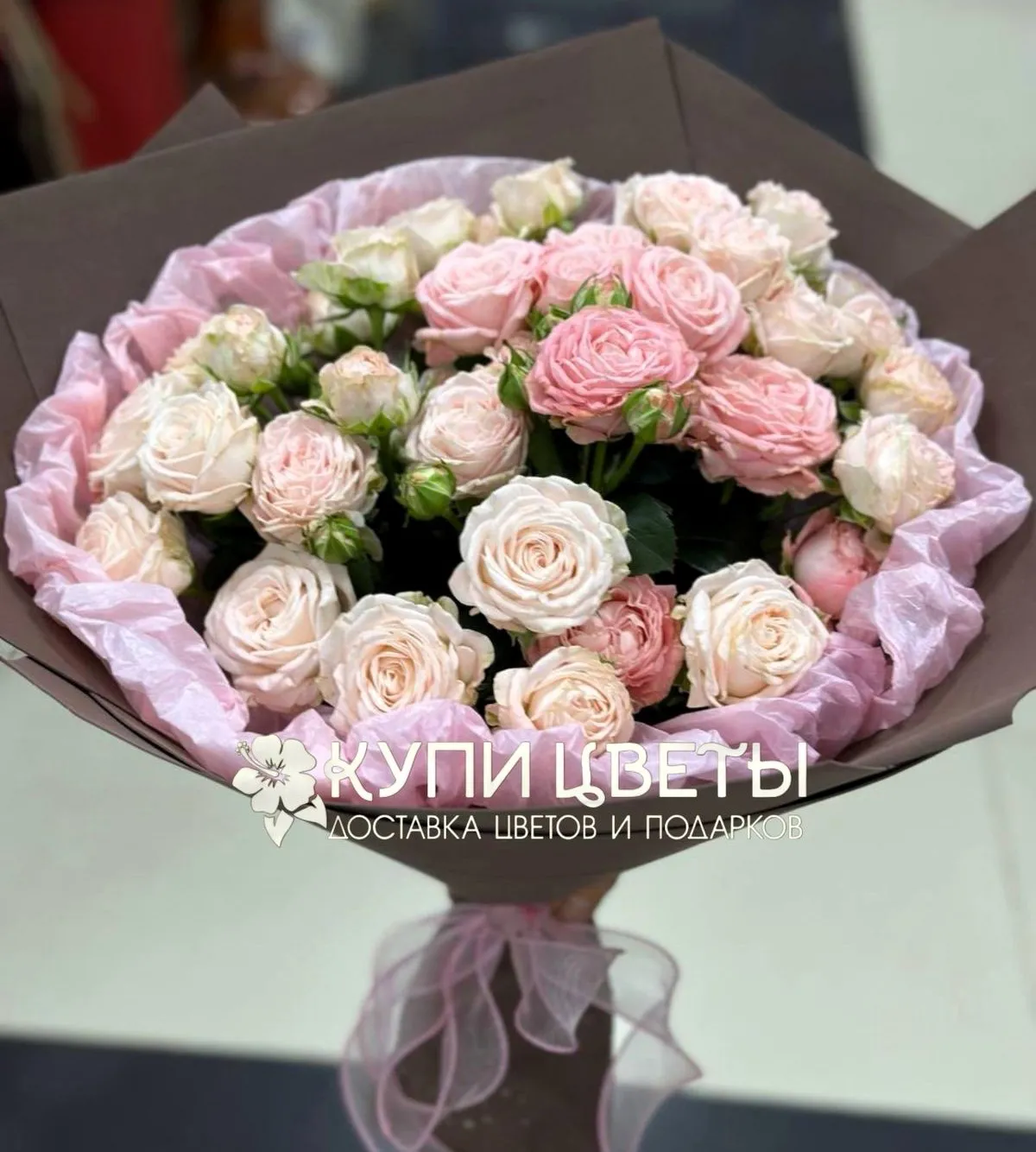 Воплощение изящества и тепла – букет из розовых кустовых роз!