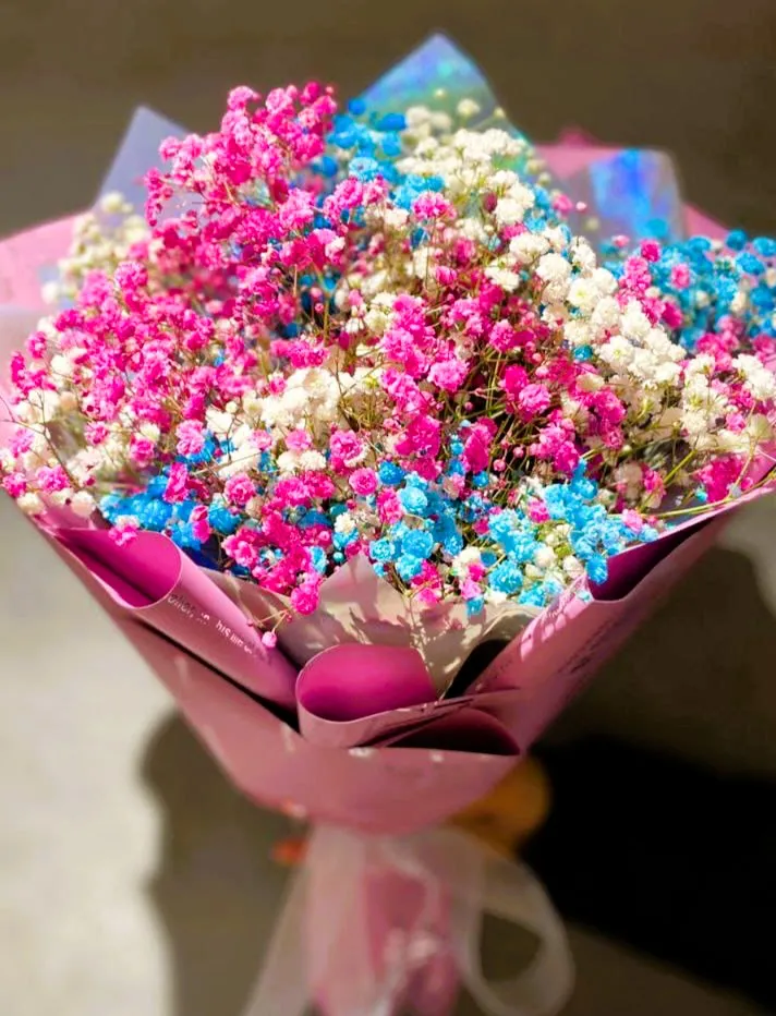 Букет из разноцветной гипсофилы — это настоящее произведение искусства, способное украсить любое торжество. Яркие цвета гипсофилы придают букету легкость и воздушность, создавая нежный, романтичный настрой. Этот цветок символизирует безмятежность и гармонию, что делает его идеальным выбором для свадеб, юбилеев и других значимых событий.